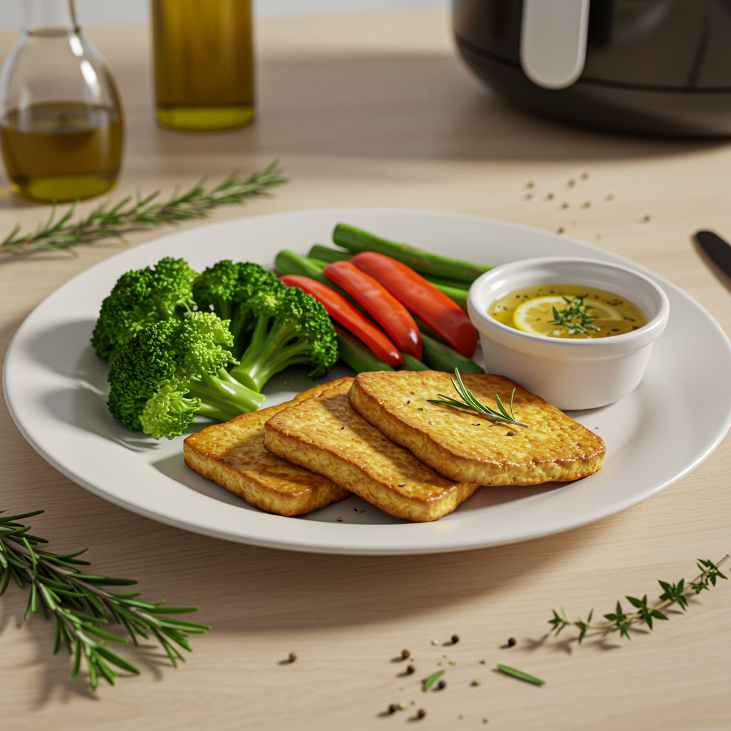 - 두부 스테이크: 두부를 도톰하게 썰어 에어프라이어에 굽거나 팬에 노릇하게 구워 채소와 함께 곁들이면 훌륭한 단백질 식사가 됩니다.