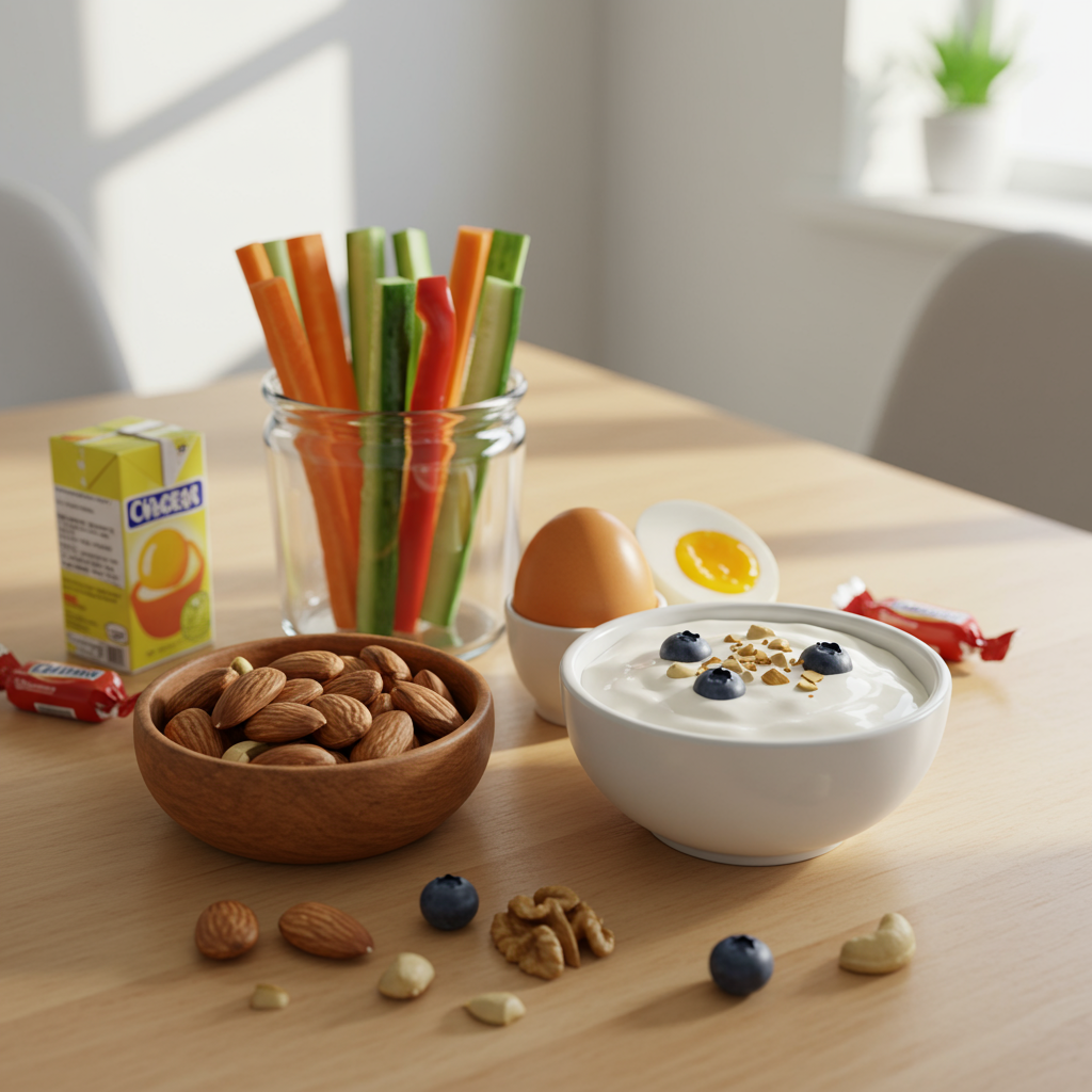 ② 건강한 간식 추천: 견과류, 요거트, 채소 스틱