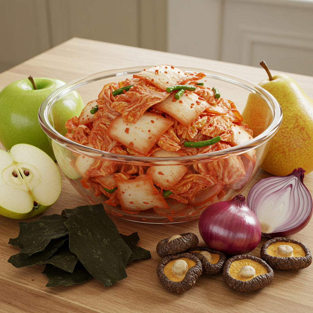 - 과일과 채소: 사과, 배, 양파, 무 등을 갈아 넣으면 자연스러운 단맛과 시원한 맛을 더해 짠맛을 보완하고 감칠맛을 높여줍니다.